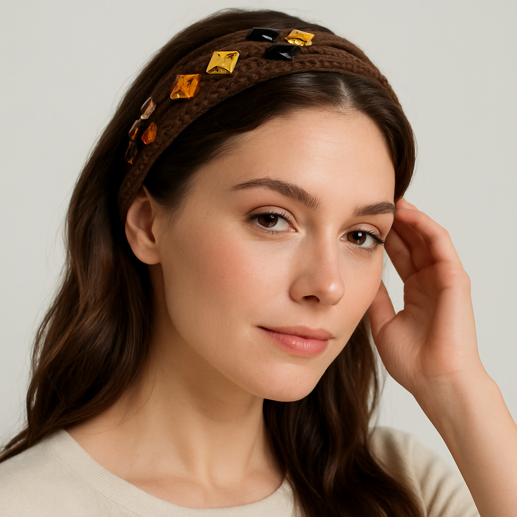 Effortlessly elevate your look with Craspedia floral headband. This headband is adorned with sparkling rhinestones, adding a touch of luxury to any outfit.
