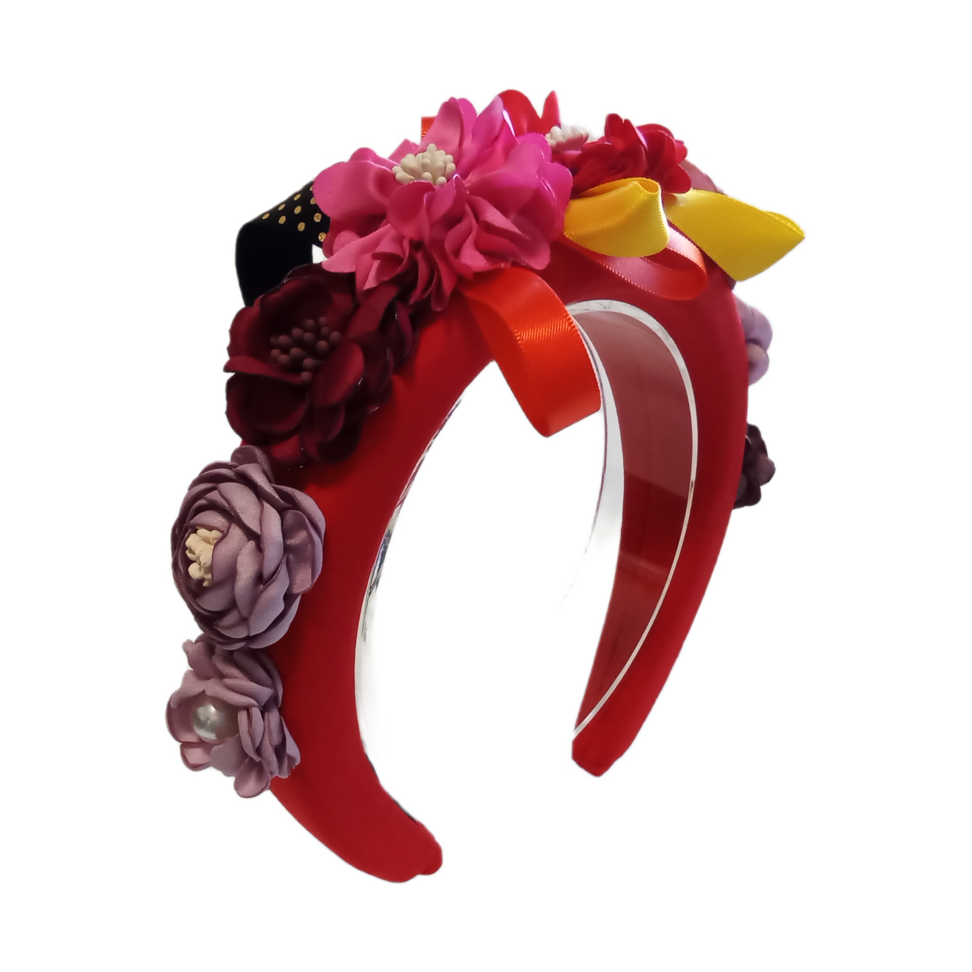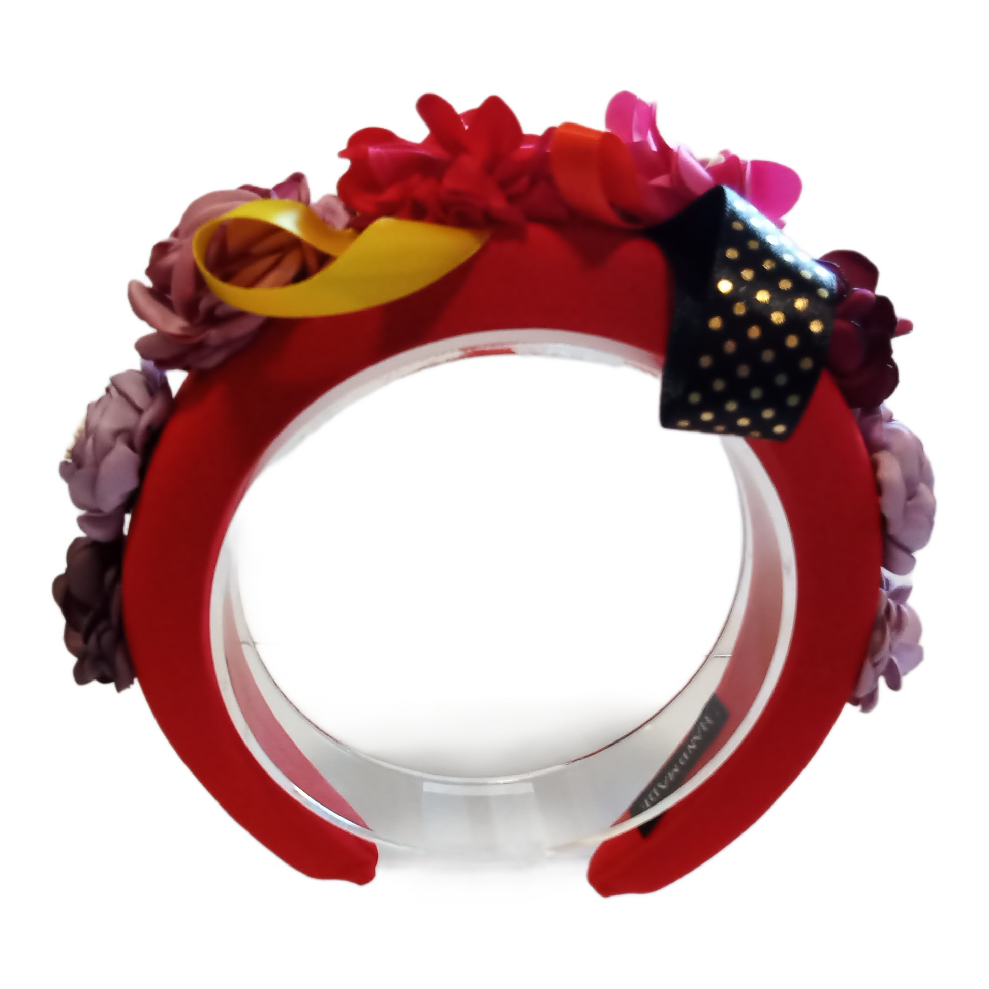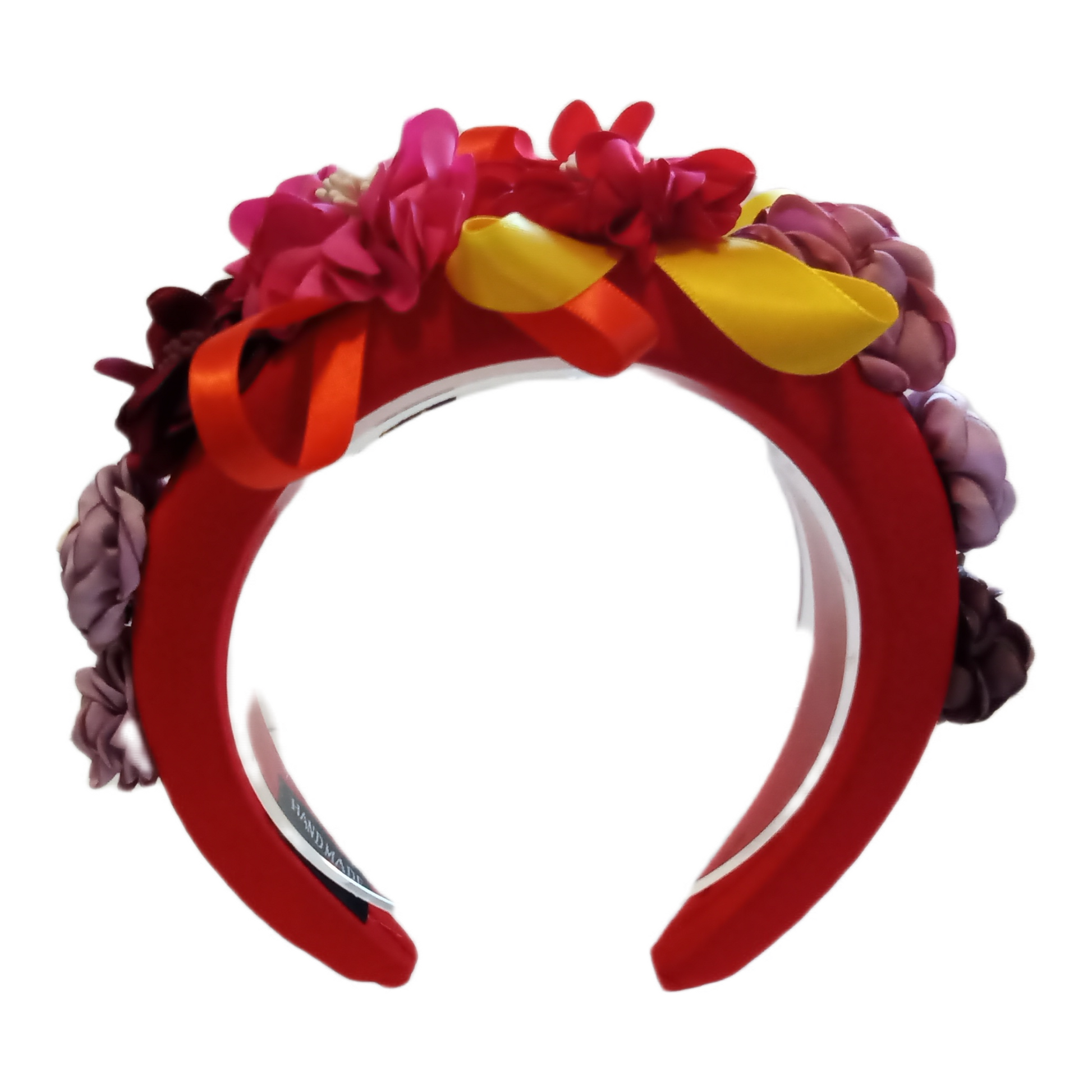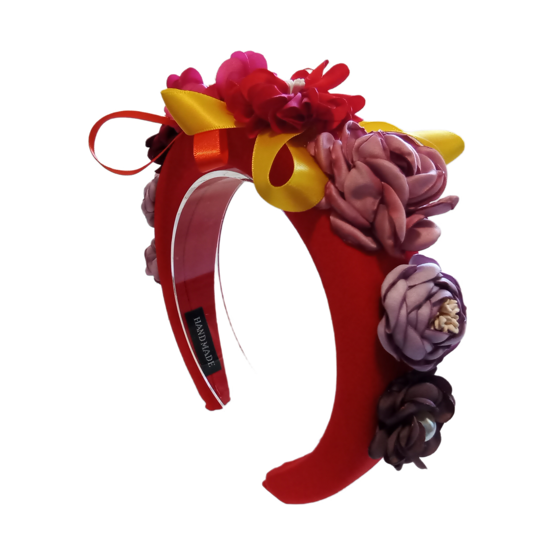 Expertly crafted with a vibrant red and yellow floral design, this handmade headband is sure to elevate any look. Perfect for adding a touch of natural charm to any outfit, this headband is a must-have accessory for any fashion-forward individual. Make a statement with this beautiful accessory.