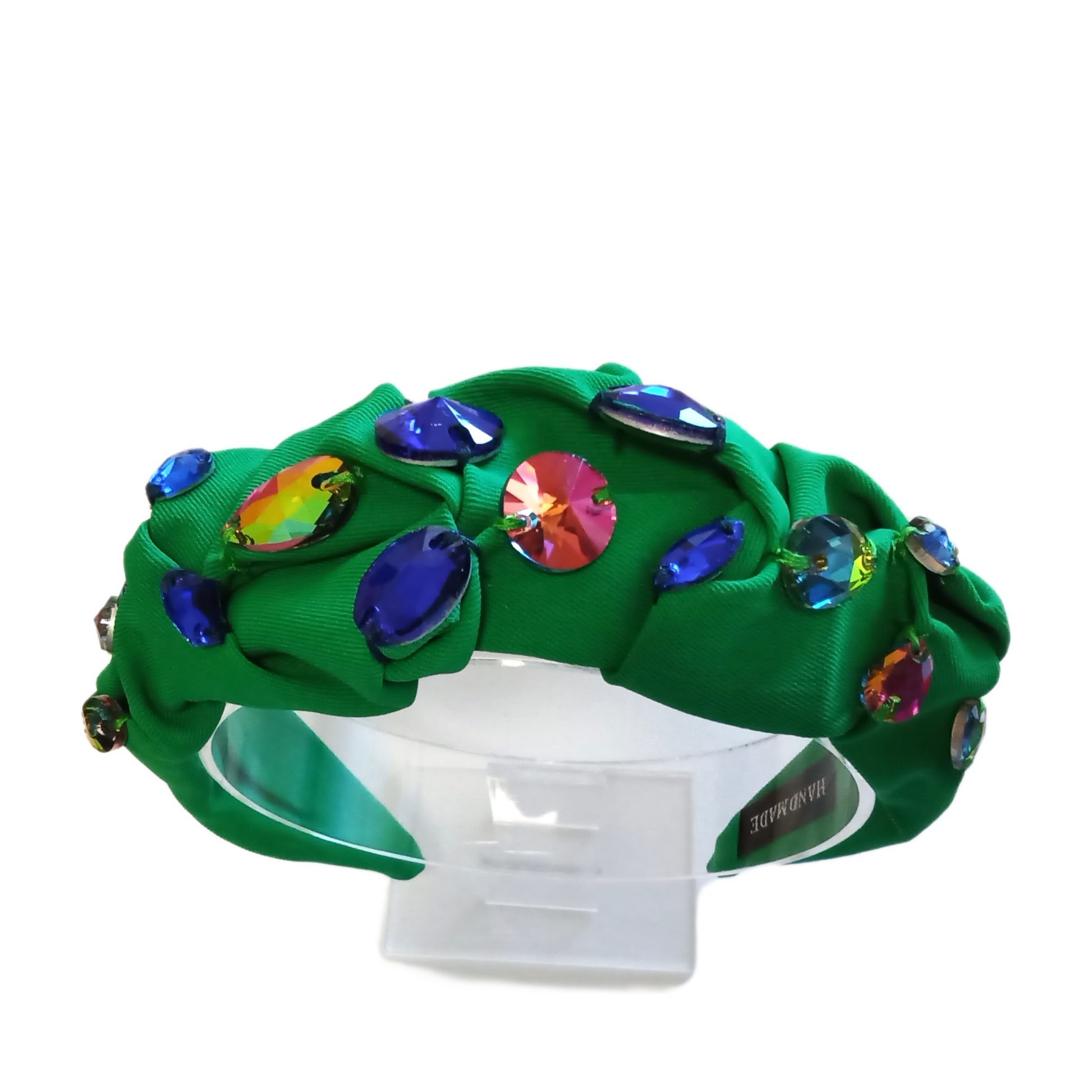 This handmade headband features a stunning rhinestone design, adding a touch of elegance to any outfit. Elevate your style with the sparkle and shine of this beautiful headband.