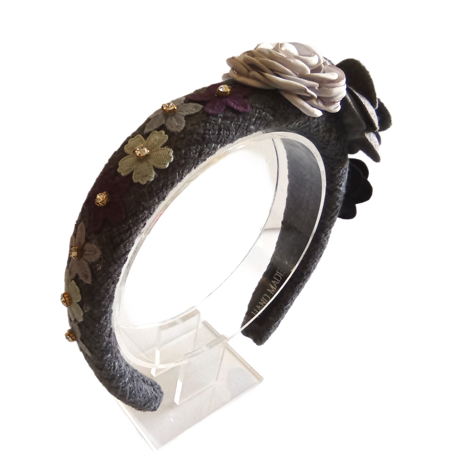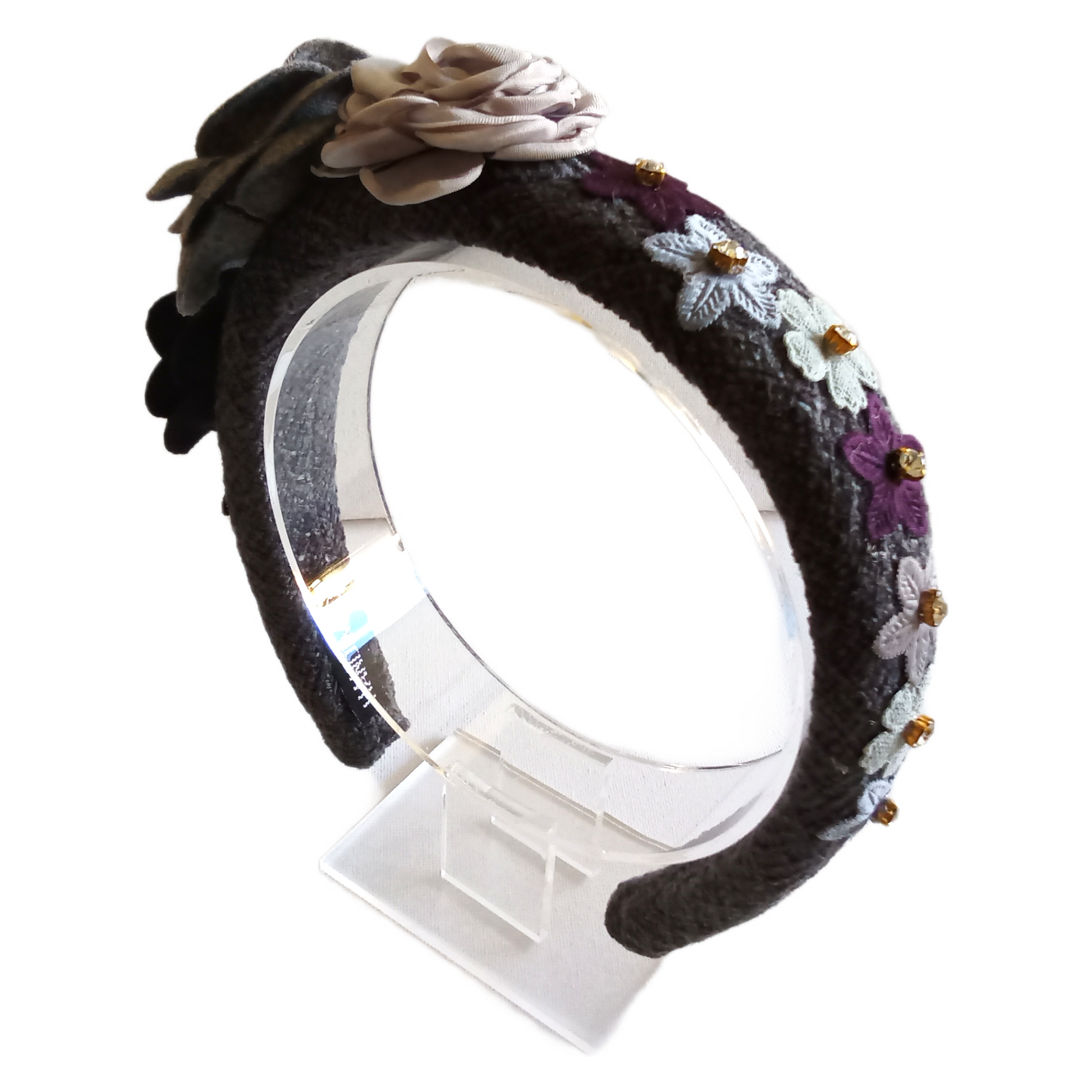 The Primrose floral headband is a beautiful accessory adorned with sparkling diamante flowers and delicate roses. Perfect for adding a touch of elegance to any outfit.